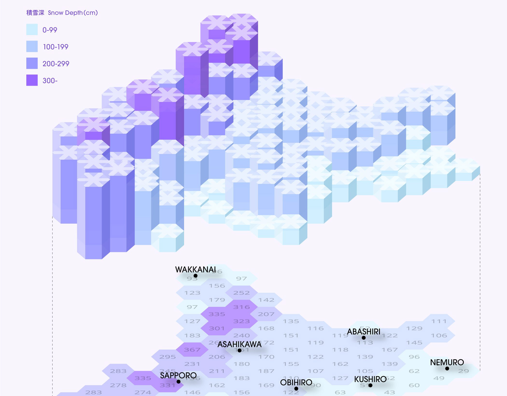 北海道積雪マップ / Snow Depth of Hokkaido