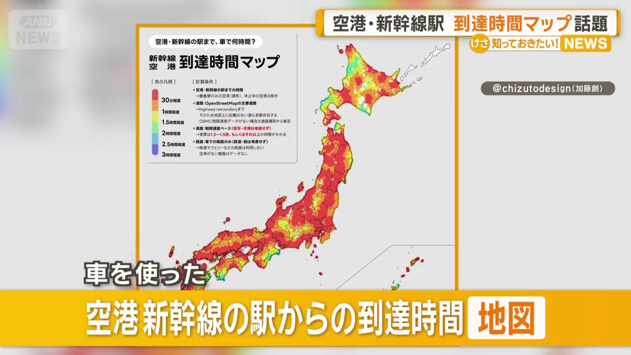 2025年11月24日(月) テレビ朝日「グッド!モーニング」にて「新幹線・空港 到達時間マップ」が放送されました。