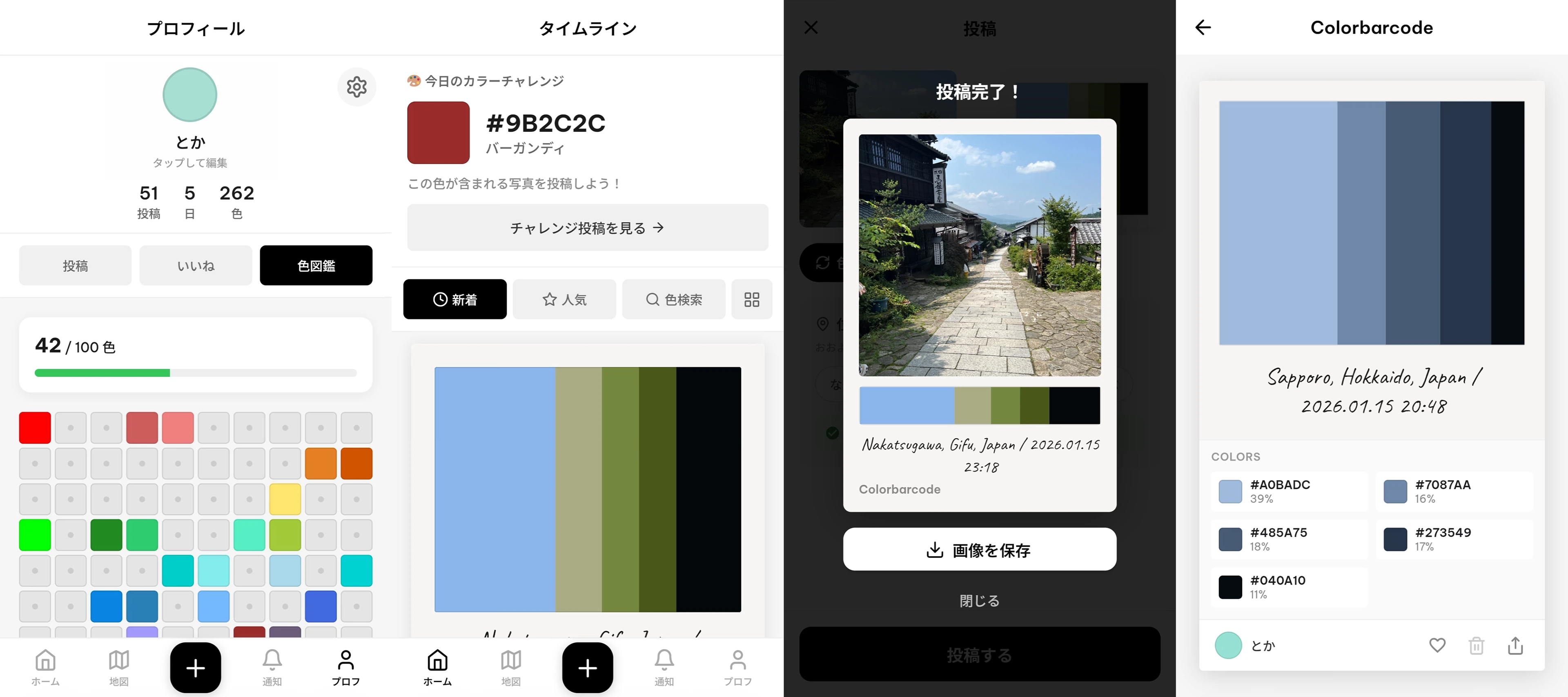 写真から色を抽出して、色のバーコードにするアプリ「Colorbarcode(カラーバーコード)」